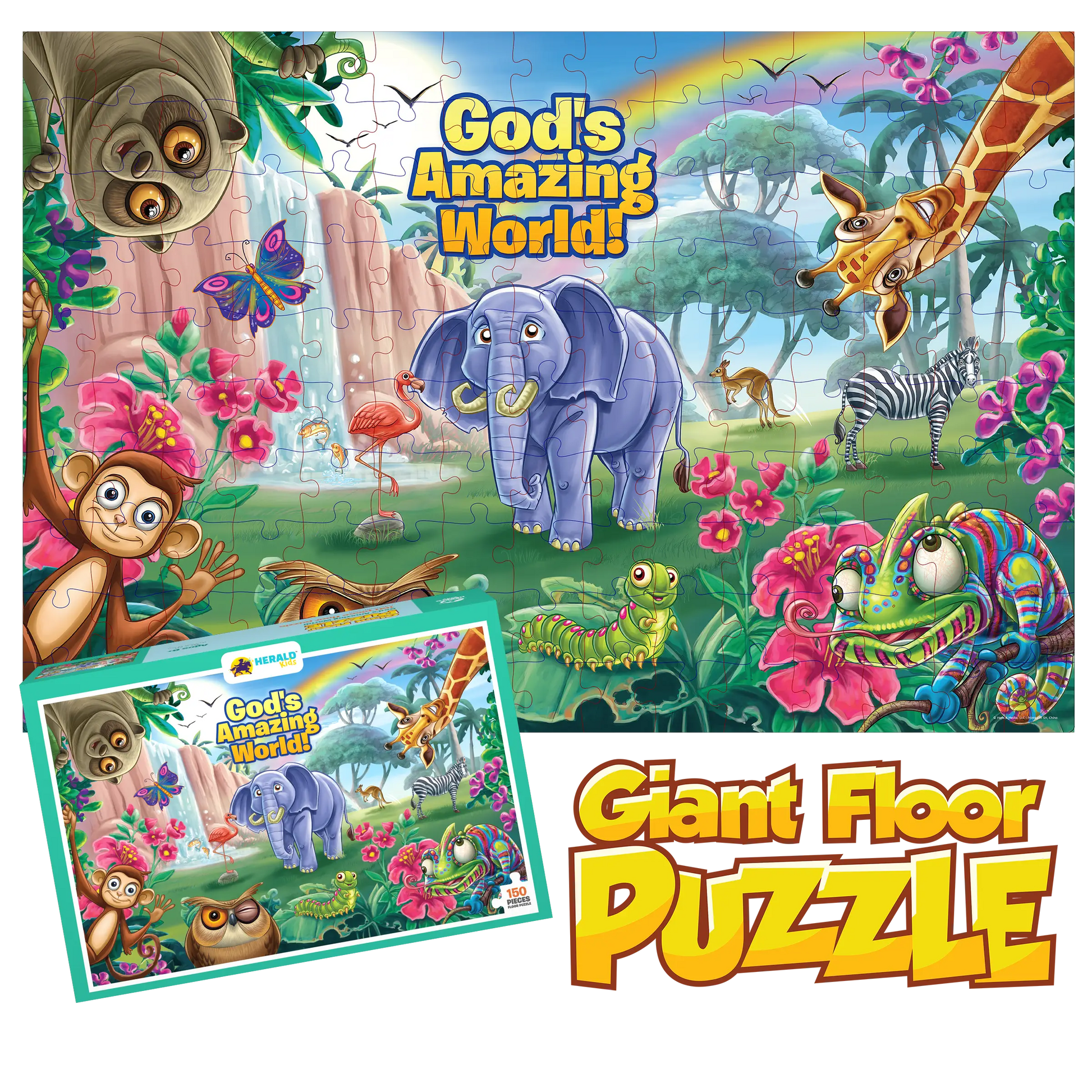 Discover the beauty of God’s creation piece by piece! The God’s Amazing World Giant Floor Puzzle features a bright and detailed illustration bursting with life--each element a reminder of the wonder and creativity of our loving Creator.